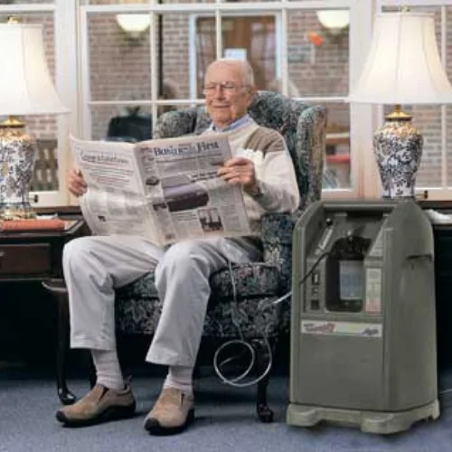 Concentrador estacionário de oxigénio com alto fluxo e alta pressão combinados. Para uso doméstico e/ou hospitalar.